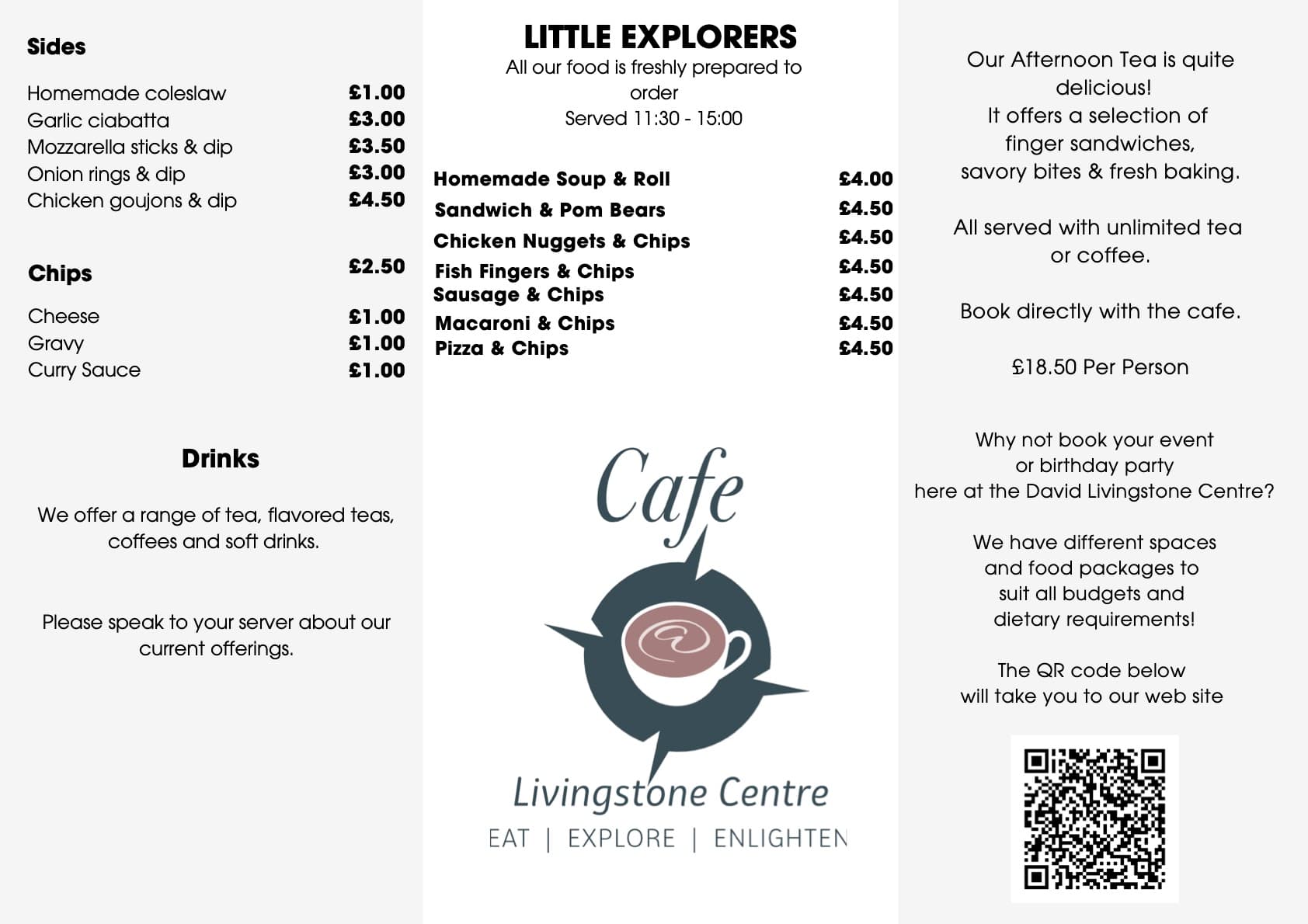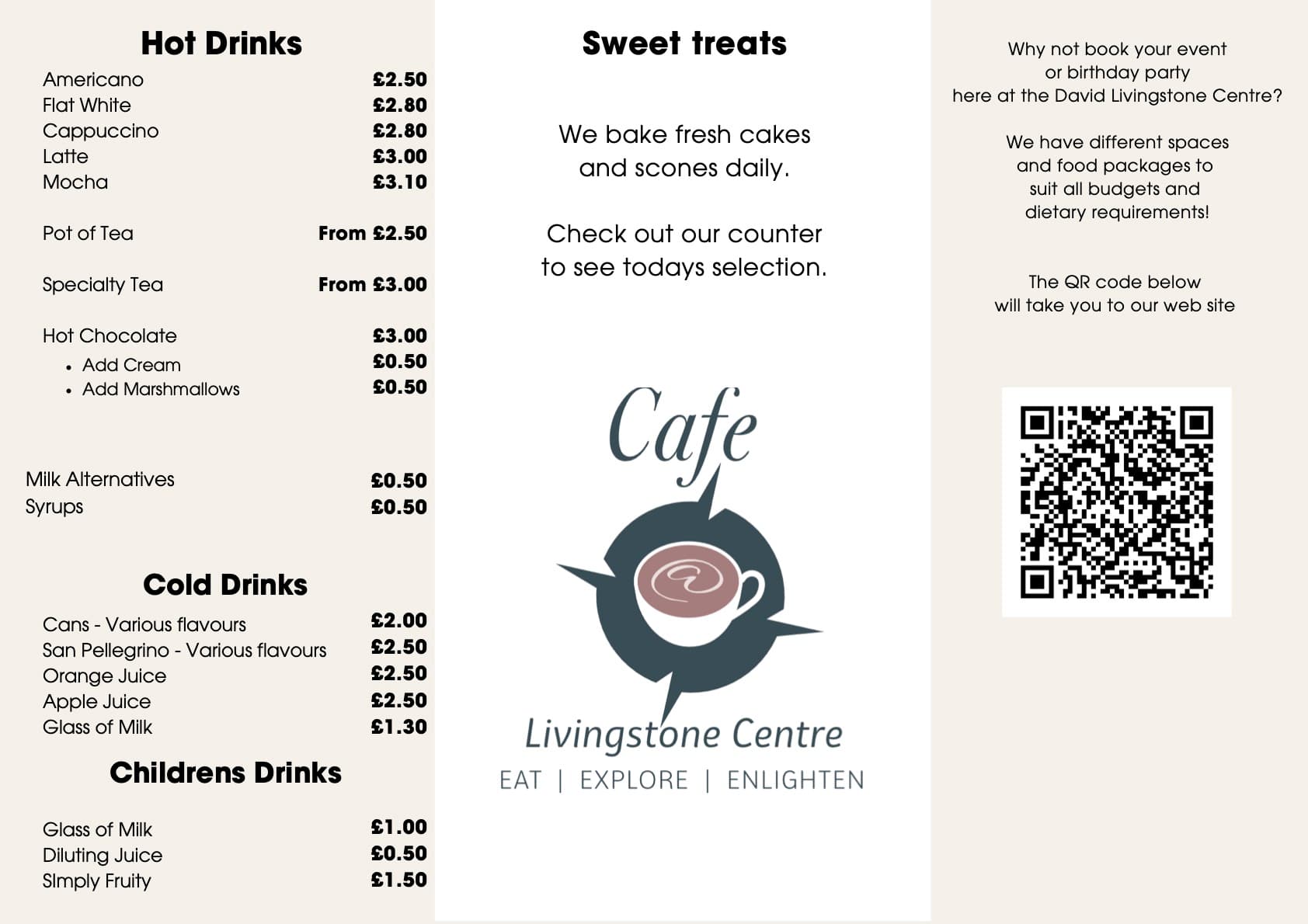 David Livingstone Birthplace’s brand-new café is normally open daily, 10pm - 4pm, last orders for hot food is 3pm, coffee and cake is served until 4pm.